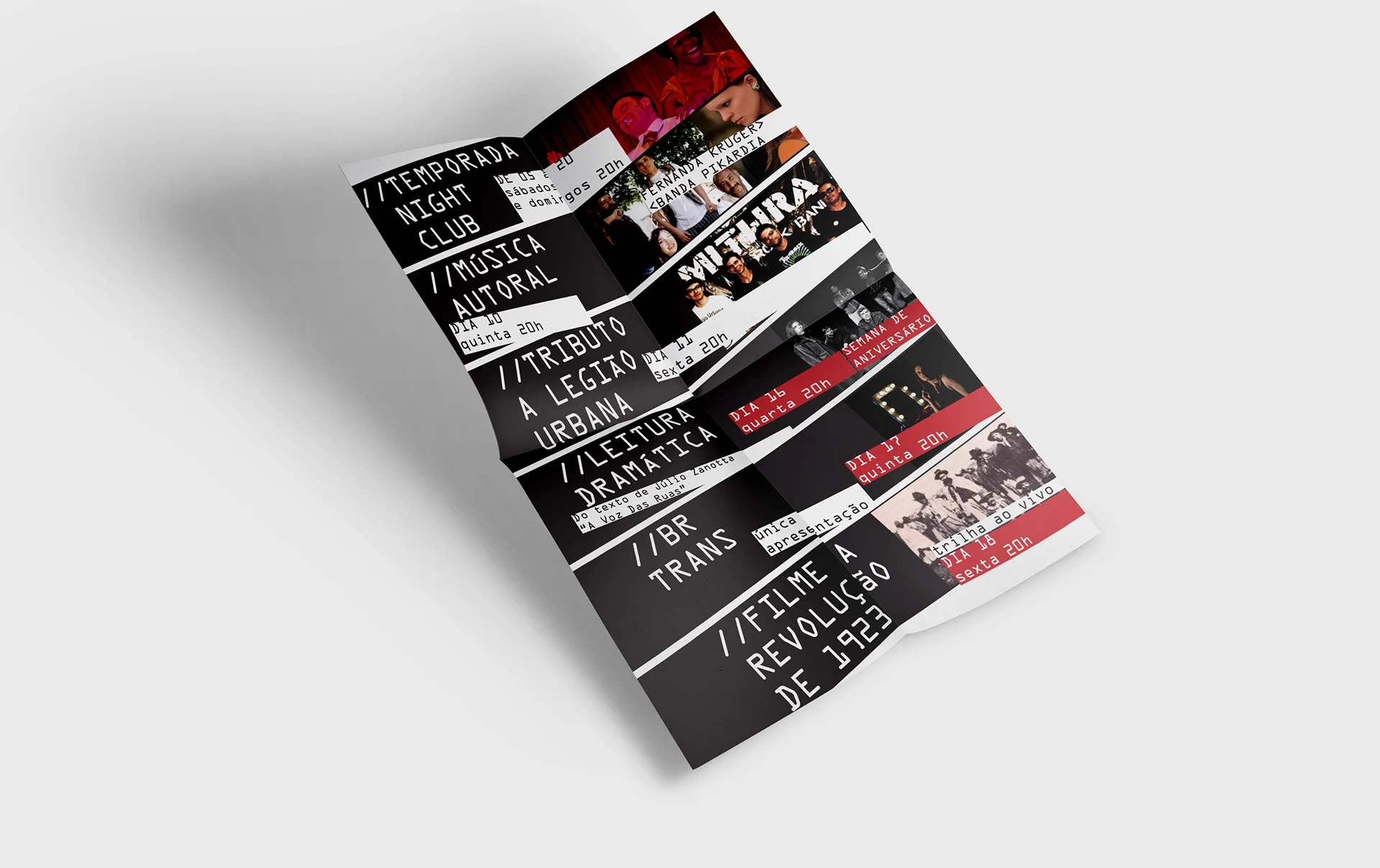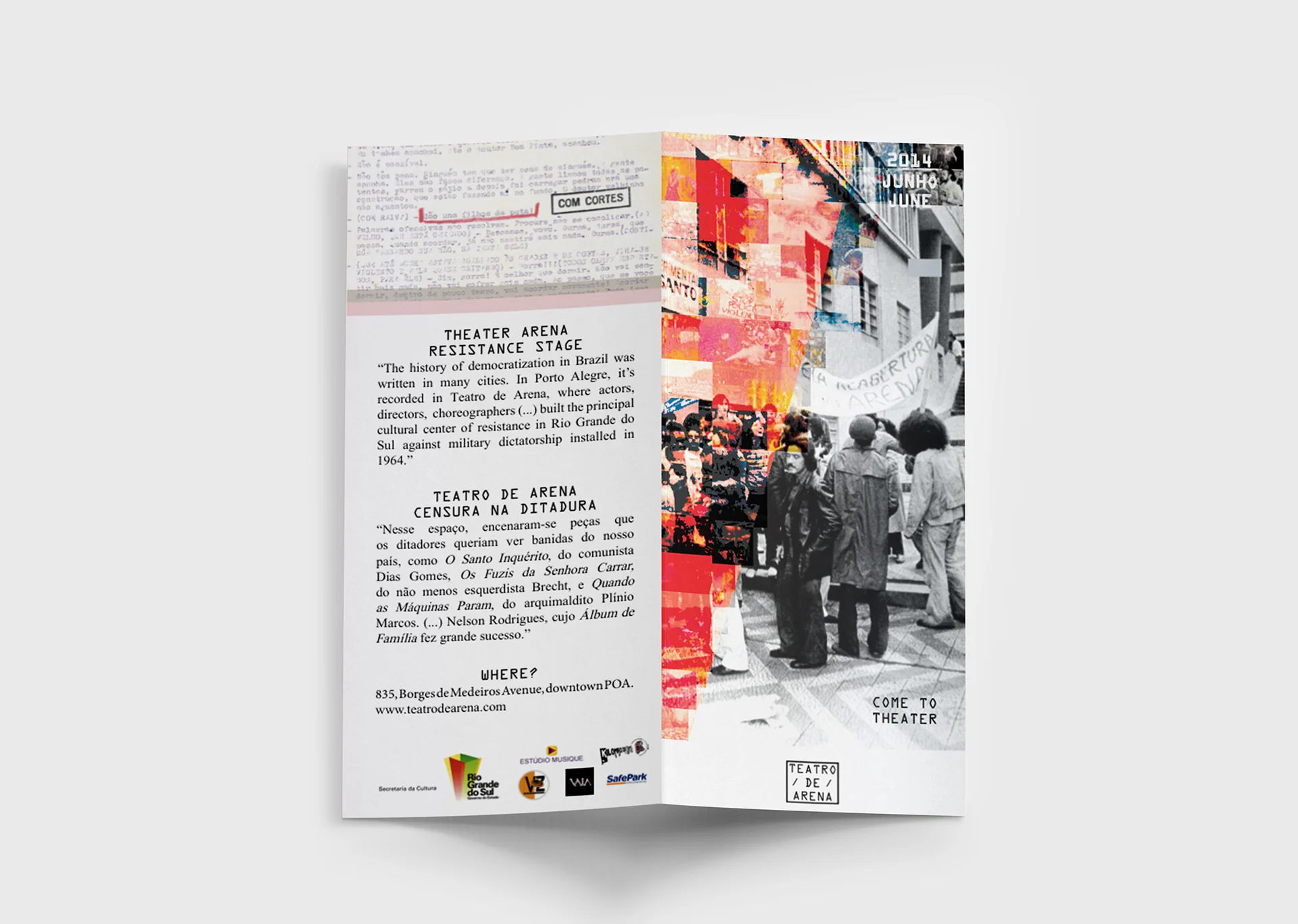 Em 2012, quando comecei a pensar a identidade visual, fui inspirado por todo contexto artístico, levando para as peças gráficas, um tom dinâmico, onde o foco estava na funcionalidade de divulgação, e de resgate a historicidade de resistência do teatro.